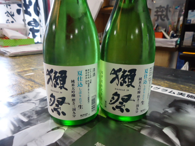 速報(^v^) ツイート 獺祭 「夏仕込しぼりたて」 磨き三割九分 本日入荷いたしました。 四合瓶が数量限定で来ております 生なので冷蔵庫で皆様をお待ちしております♪ 無くなり次第終了となります。 すぐになくなる商品ですので何卒ご理解をお願いします<(_ _)> 陸奥八仙 「緑ラベルひやおろし」 一番乗り!! (日本酒度 0) 優しい柔らかい味わいとなっております♪ 秋のお酒を楽しむ時期が もうすぐそこまで!(^^)!